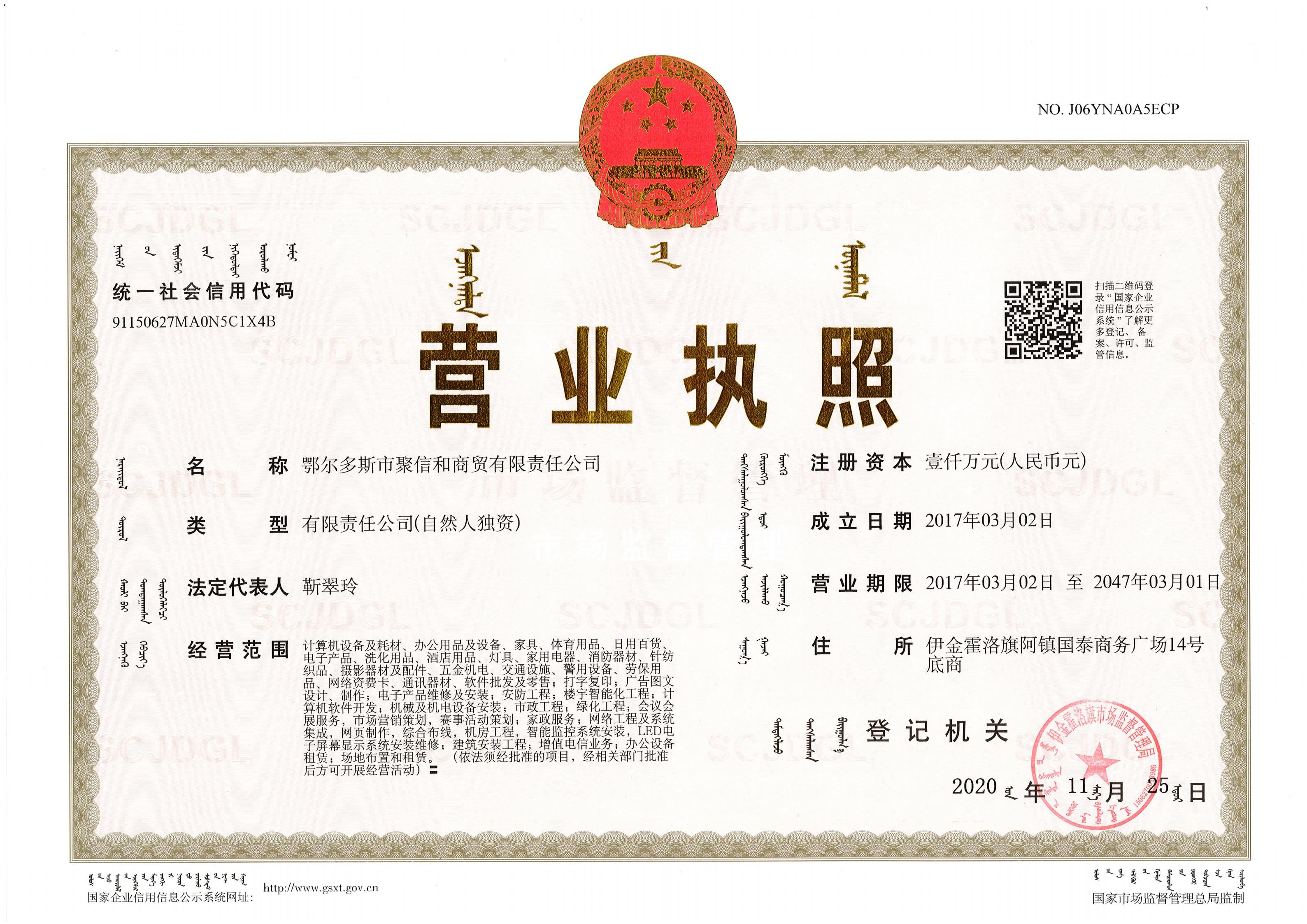 您好,歡迎訪問鄂爾多斯市聚信和商貿(mào)有限責(zé)任公司